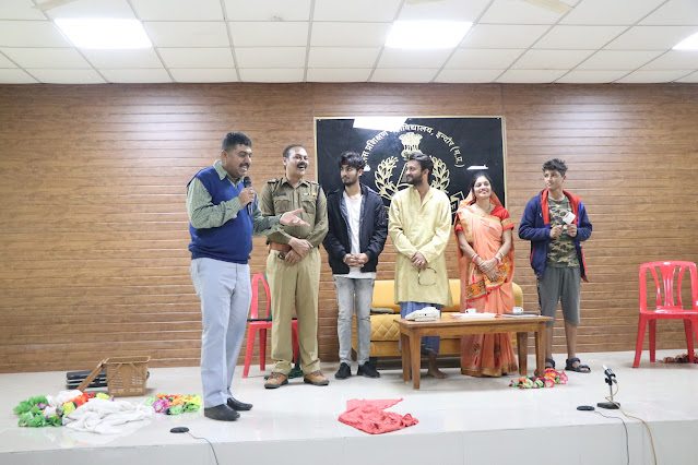 दिनांक 16.12.2022 को शाम पीटीसी में हास्य नाटक "दरोगा जी चोरी हो गई" का मंचन किया गया सुश्री रचना जोहरी एवं उनकी टीम द्वारा हास्य नाटक का मंचन किया गया .स्मार्ट सिटी सीईओ श्री दिव्यांक सिंह की गरिमामय उपस्थिति एवं पुलिस अधीक्षक श्रीमती हितिका वासल, अतिरिक्त पुलिस अधीक्षक श्रीमती सुनीता रावत ,अतिरिक्त पुलिस अधीक्षक श्रीमती सौम्या जैन समस्त राजपत्रित अधिकारी पीटीसी एवं स्टाफ के समक्ष उक्त नाटक का मंचन किया गया.